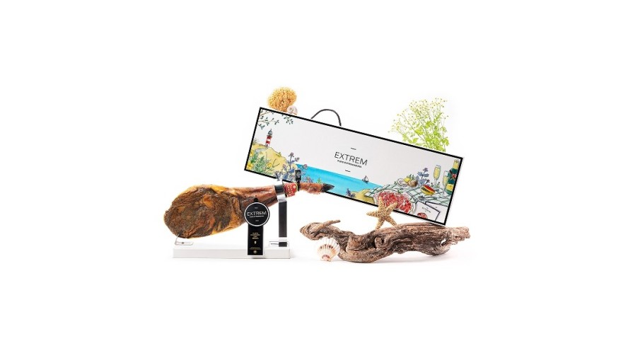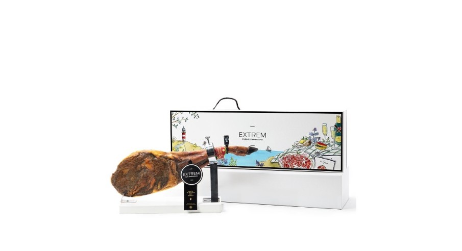 • 1 Estuche ilustrado Edición Limitada con 1 Pieza entera de Paleta de Bellota 100% ibérica