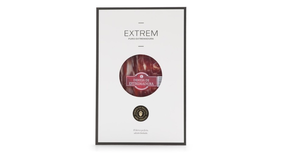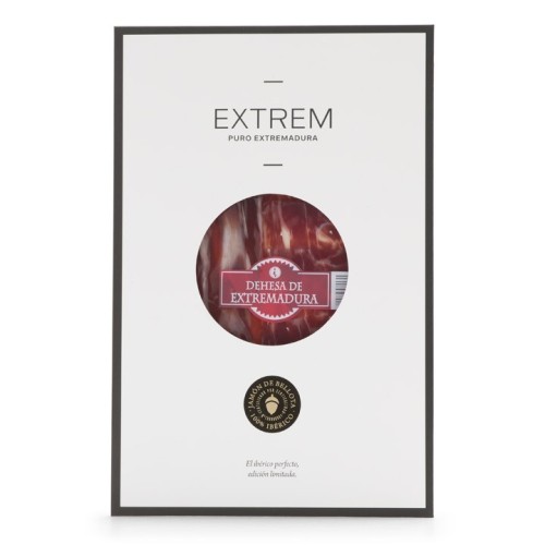 Descubre la excelencia de nuestro Jamón de bellota 100% Ibérico DOP Dehesa de Extremadura, cortado a cuchillo y curado de forma natural durante 42-44 meses. Criado en libertad con hasta 3 hectáreas por animal, garantizamos el bienestar y la calidad absoluta desde origen. Controlamos todo el proceso, del campo a tu mesa, para ofrecerte una joya gastronómica irrepetible. Cada loncheado se presenta en sobres individuales dentro de un packaging blanco exclusivo, diseñado para conservar el sabor y elevar la experiencia