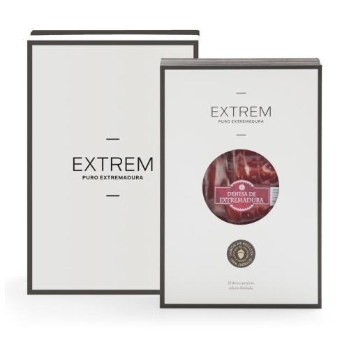 Descubre la excelencia de nuestro Jamón de bellota 100% Ibérico DOP Dehesa de Extremadura, cortado a cuchillo y curado de forma natural durante 42-44 meses. Criado en libertad con hasta 3 hectáreas por animal, garantizamos el bienestar y la calidad absoluta desde origen. Controlamos todo el proceso, del campo a tu mesa, para ofrecerte una joya gastronómica irrepetible. Cada loncheado se presenta en sobres individuales dentro de un packaging blanco exclusivo, diseñado para conservar el sabor y elevar la experiencia
